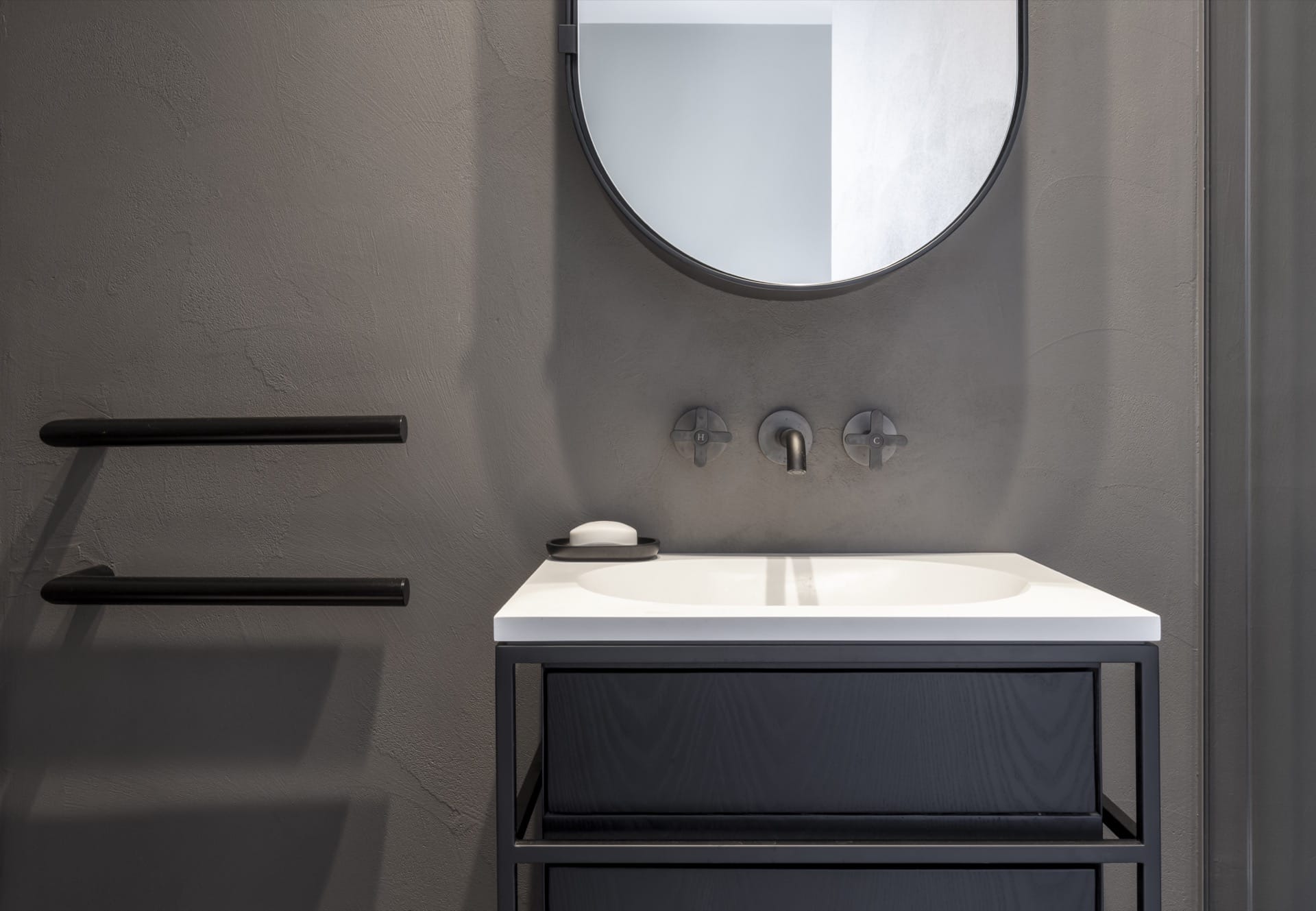 Uno spazio dal sapore scandinavo suggerito dall’origine svedese della committente ma con la qualità e la cura dei dettagli tipicamente italiana. L’utilizzo intelligente dei diversi materiali di finitura dal pavimento in legno in betulla, al travertino romano, al Microcemento nel bagno la scelta vincente del progetto dei materiali l’essenza del progetto è esaltata dagli scatti di Billy Bolton